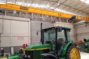 Además, le ofrecemos un abanico completo de soluciones de elevación, incluyendo grúas pluma giratorias (con posibilidades de instalación mural hasta 5 T de carga, o sobre columna con capacidad hasta 6,3 T, y un alcance hasta 10 metros según la carga máxima), o un puente grúa con capacidad hasta 120 T.