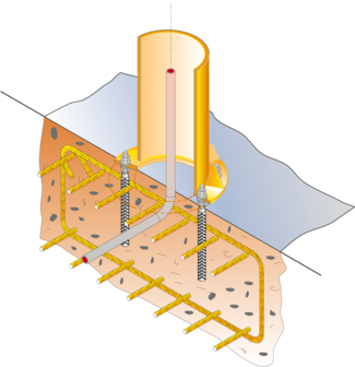 El volumen de suministro de ABUS consta de placa intermedia y, si lo desea, podemos incluir los anclajes pasantes, el mortero y el material de encofrado necesarios.