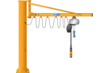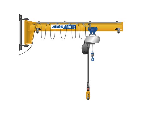 La grúa pluma mural LWX está diseñada para su fijación a una pared o a una columna. Esta grúa de puesto de trabajo ofrece un radio de giro de 180° con un alcance de brazo de hasta 7 m y una capacidad de carga de hasta 0,5 t.