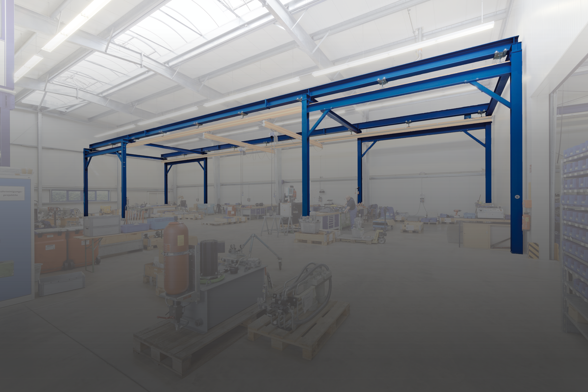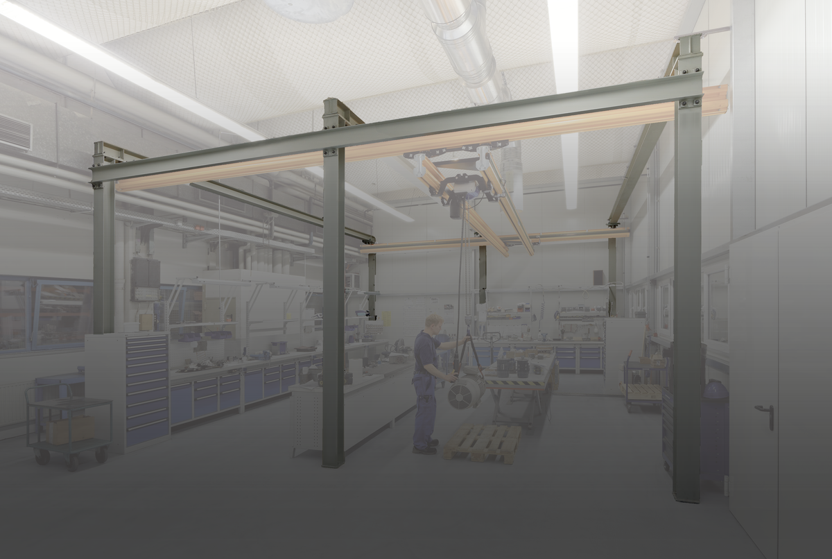 Las instalaciones de pórtico serán optimizadas de forma individual entre los pórticos, para no colisionar con maquinaria u otras instalaciones sobre el suelo. Las áreas de trabajo bajo la instalación de grúa suspendida siguen teniendo un buen acceso. Los refuerzos laterales necesarios entre los portales se colocan lo más arriba posible. Con ello se permite el acceso lateral, por ejemplo con una carretilla de horquilla.
