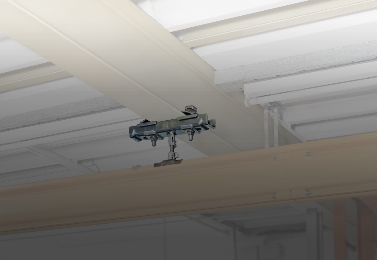 Entonces puede colgar un sistema de grúa suspendida HB directamente de las vigas. La fijación se realiza a la cabeza inferior de varios tipos de perfiles, como vigas I, INO, IPE, HEA, HEB o HEM.