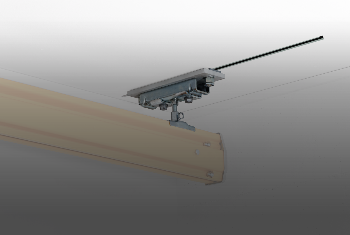 El uso de raíles Halfen, autorizados para cargas dinámicas, son la elección idónea. Se fija una placa intermedia a estos raíles con tornillos Halfen, de la que posteriormente colgarán las suspensiones de grúa ABUS.