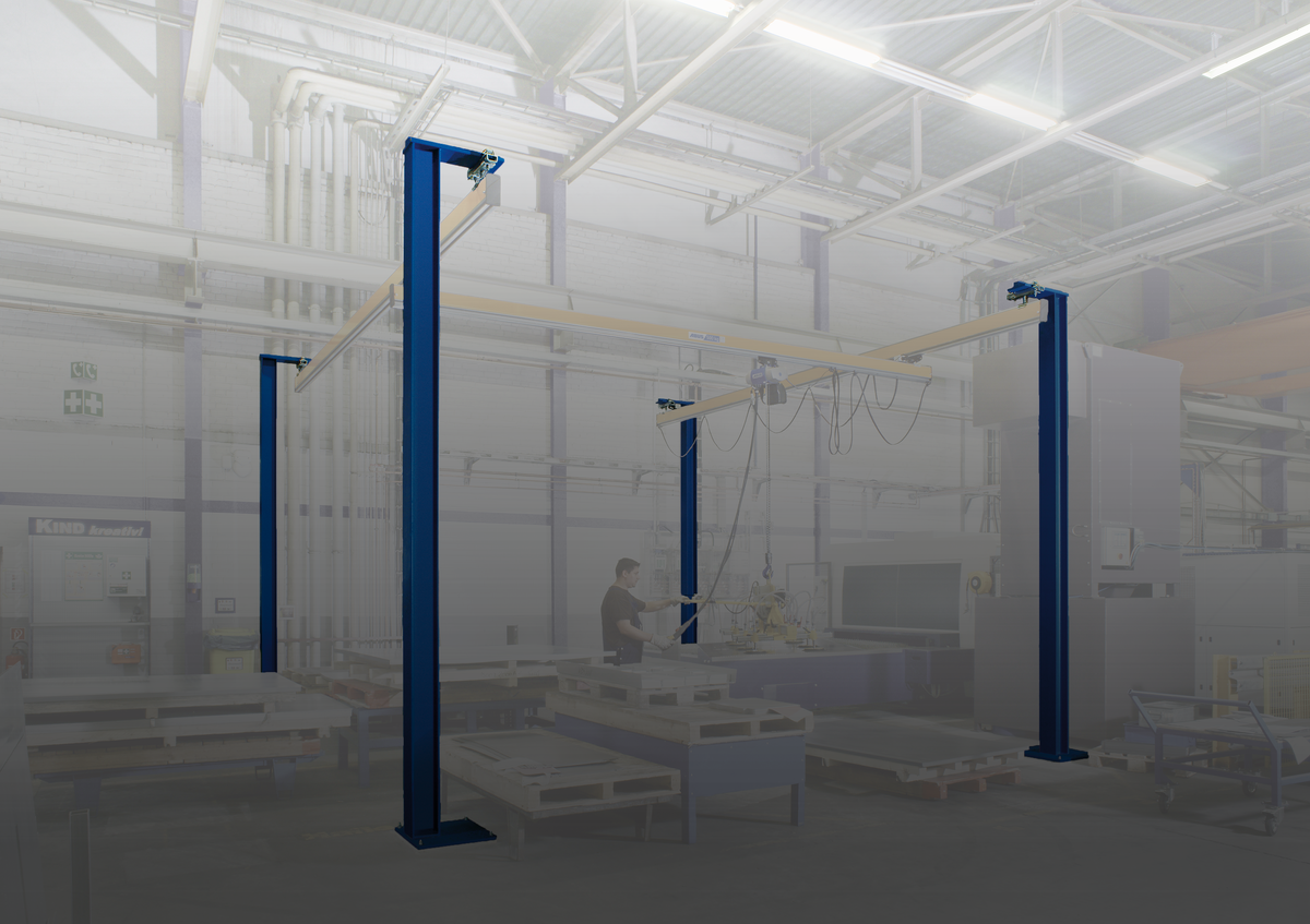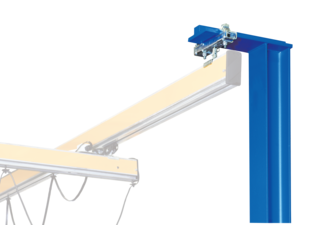 Los brazos en voladizo de ABUS son la variante más económica para el montaje sobre el suelo de su nave. La fijación sobre el suelo se realiza mediante un anclaje químico de Fischer especialmente desarrollado para cargas dinámicas.