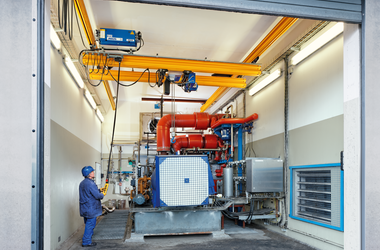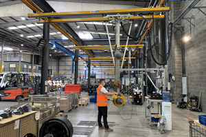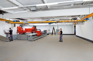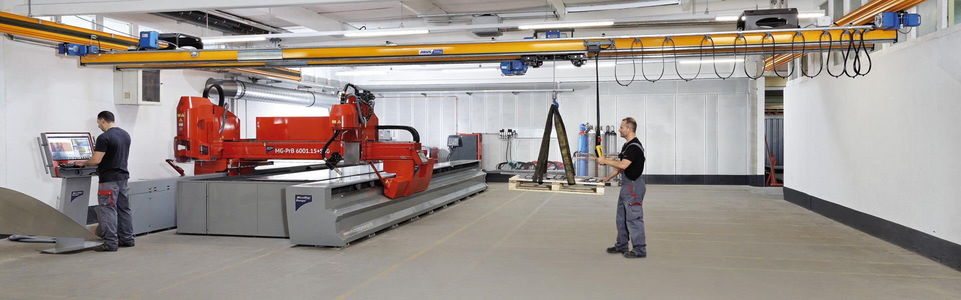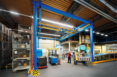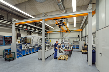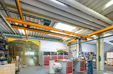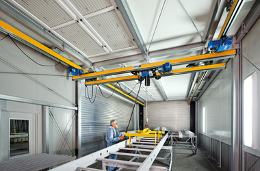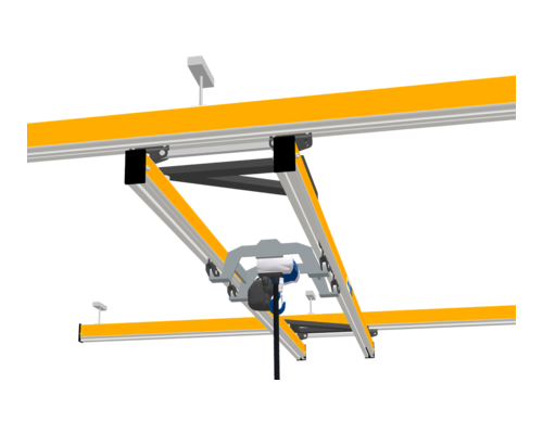 El puente grúa birraíl ZHB de ABUS destaca por sus grandes capacidades de carga y longitudes de la viga puente. Tanto la traslación del carro como la del puente pueden ser eléctricas. El polipasto de cadena está situado entre los carriles, por lo que se alcanza una gran altura de gancho.
