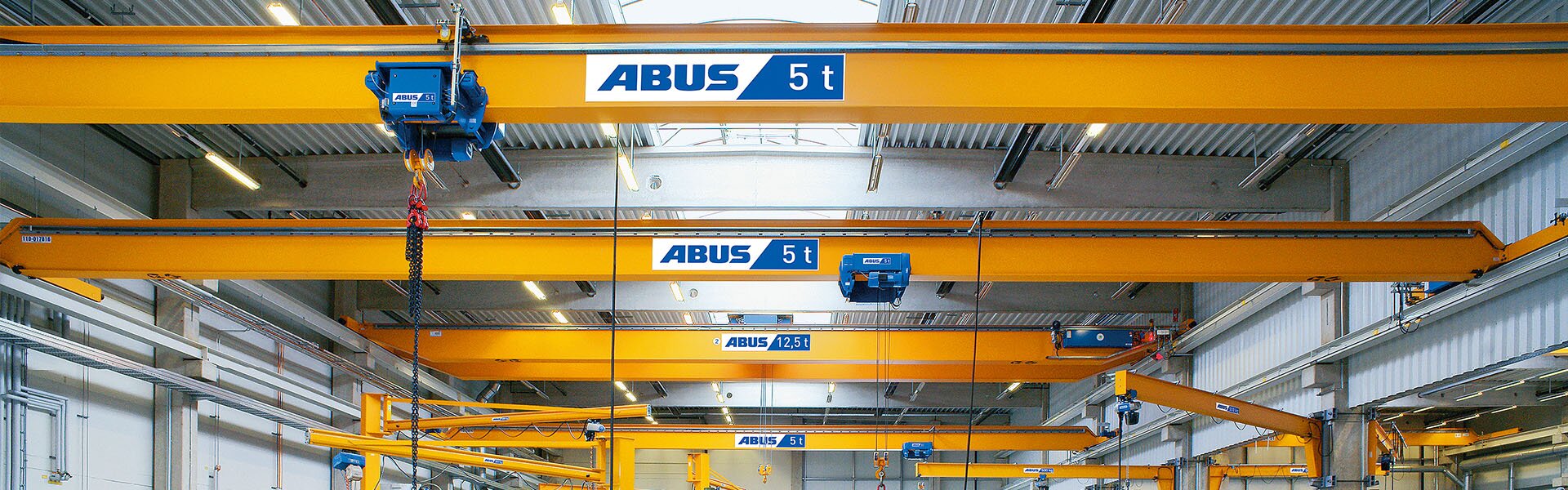 La alimentación eléctrica por línea de arrastre de ABUS puede utilizarse, entre otros, como alimentación eléctrica para hasta dos polipastos sobre un mismo carril. Existen las siguientes posibilidades de aplicación: Alimentación de corriente a máquinas y dispositivos móviles, por ejemplo en la traslación de carros y grúas, vías de grúa suspendidas, polipastos eléctricos y máquinas herramienta.