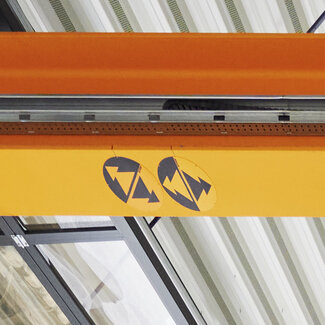 Para ABUS, la seguridad es es de vital importancia al manejar una grúa. Para que la dirección de traslación de la grúa sea siempre clara, sin importar donde esté el gruísta, ABUS utiliza rótulos de dirección de movimiento.