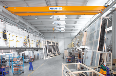A diferencia del modelo D, el larguero con polipasto se apoya entre los testeros de forma articulada. De este modo se consigue una altura de construcción del carro mínima: un modelo con espacio disponible hacia arriba como variante al modelo DQA también rebajado.