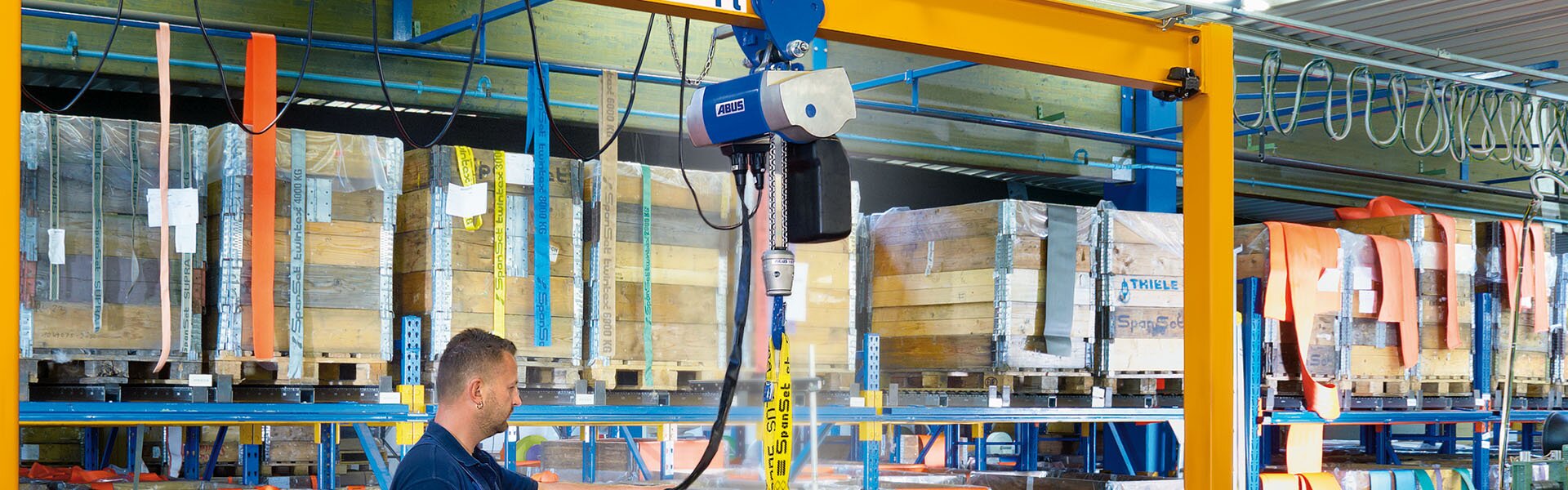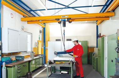 El ABUCompact GM4 está disponible en versión de 1 o 2 ramales. Levanta cargas de 630 kg / 1,25 t. Los recorridos de gancho realizables son de 50 m / 25 m. Según la capacidad de carga hay distintas velocidades de elevación disponibles.