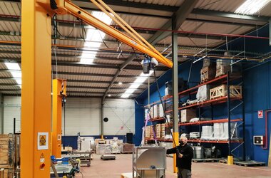 - 3 Pescantes modelo LS con una capacidad de carga de 250 kg y un alcance de 5.600 mm